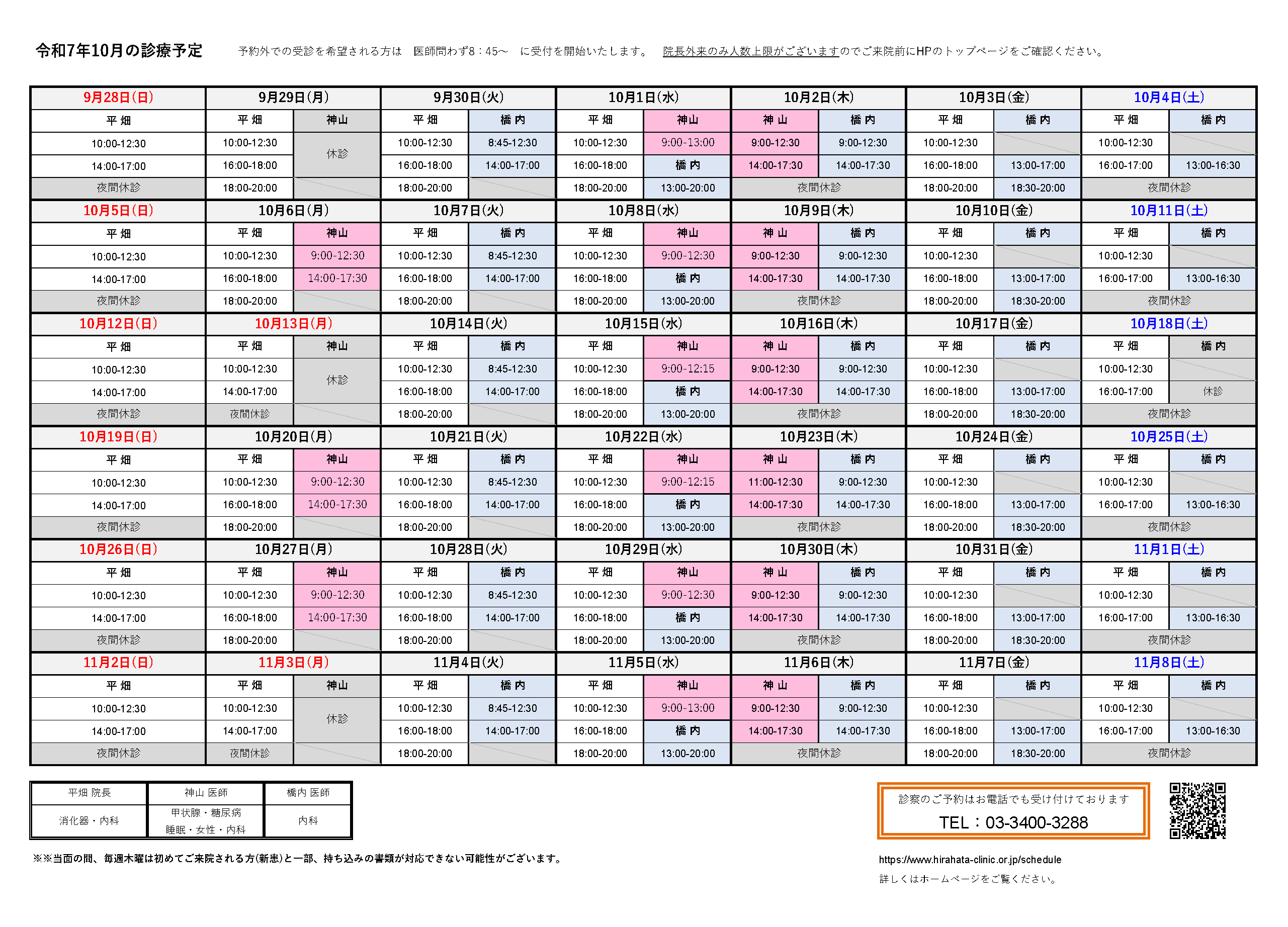 2025/6/1より、橋内医師の診察時間が変更となります。